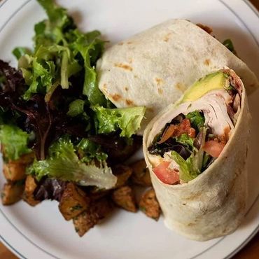 Scrambled Eggs, Black Beans, Chorizo, Jalapeño and Avocado Wrapped in a Flour Tortilla and Topped with Cheddar Cheese, Sour Cream and Salsa. Served with Home Fries & Salad.
